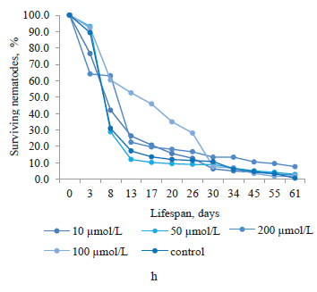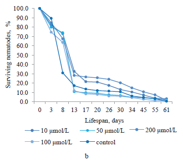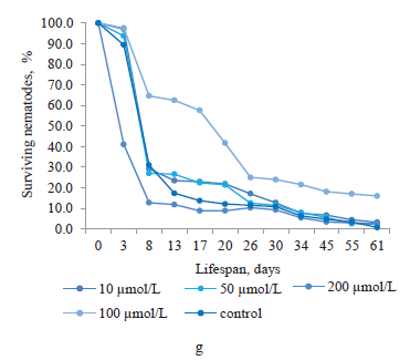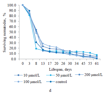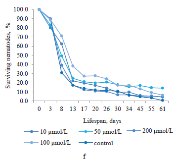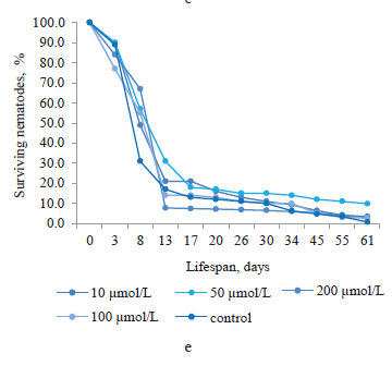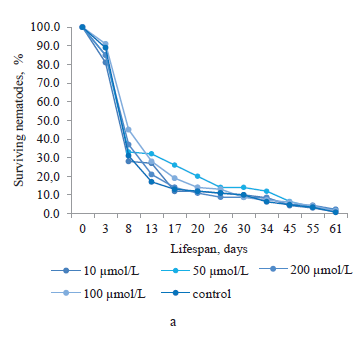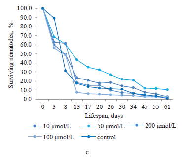 The bioactive substances produced from callus, root, and suspension cultures of the above medicinal plants had a positive effect on the lifespan of C. elegans nematodes. This confirms their geroprotective properties and allows them to be used as anti-aging agents.