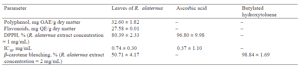 The R. alaternus leaf extract appeared to have a beneficial effect on cytotoxicity. The antioxidant properties of R. alaternus L. makes this plant an excellent genoportector.