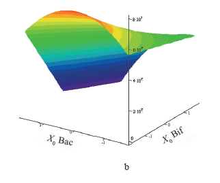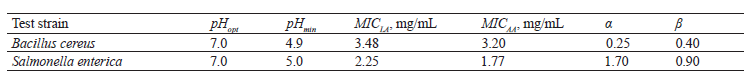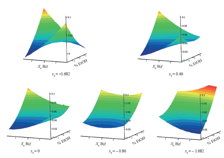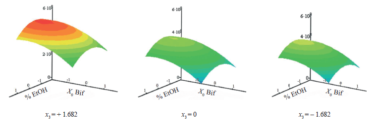 The obtained fructans were closer to commercial oligofructose in terms of the number and location of NMR peaks. However, they were between oligofructose and inulin in terms of signal intensity. The response surface analysis for bacilli showed that the minimal synbiotic factor value corresponded to the initial probiotic count of 7.69 log(CFU/mL) and the fructan fraction precipitated by 20% ethanol. The metabolites produced by the bacilli also affected their growth. The synbiotic factor response surface for the experiments with Salmonella transformed from parabolic to saddle shape as the initial test strain count increased. The minimal synbiotic factor value corresponded to the lowest precipitant concentration and the highest probiotic count.