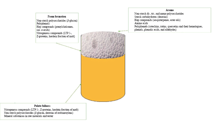 The nitrogenous structure and other organic compounds of beer proved to depend on protein substances. The research also revealed a number of factors that affected the fraction distribution of biomolecules in different beer sorts.