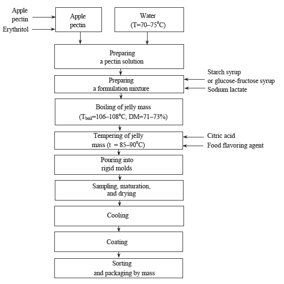 Jelly is a popular confectionery product but it has a high content of easily digestible sugars, namely 70–85%. Therefore, modern confectioners are trying to develop new formulations of jelly with reduced sweetness and sugar content. One of the ways to achieve that is to use starch syrup instead of white sugar. Another benefit of starch syrup is that it can slow down the drying and staling of jelly.