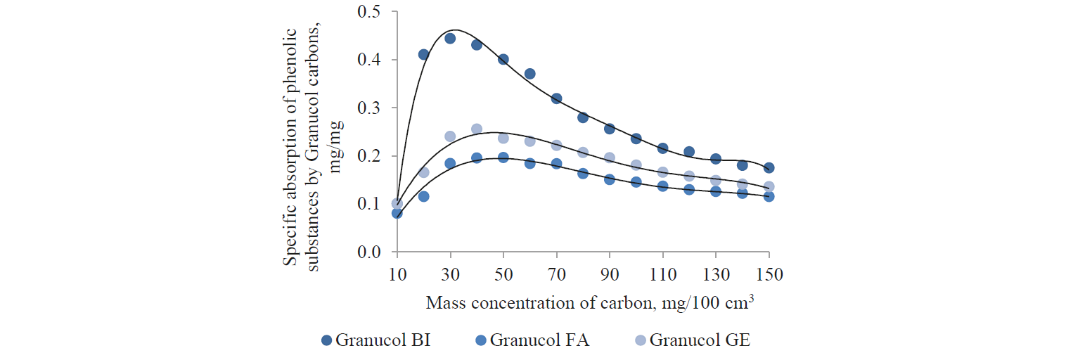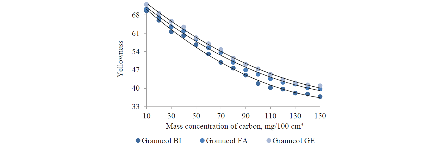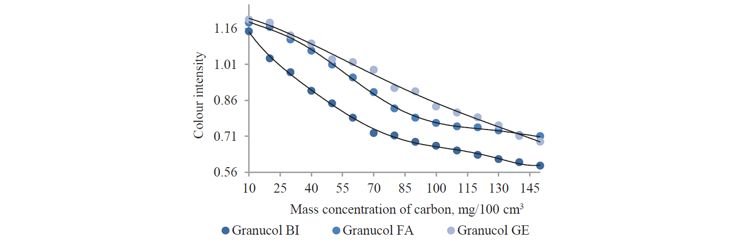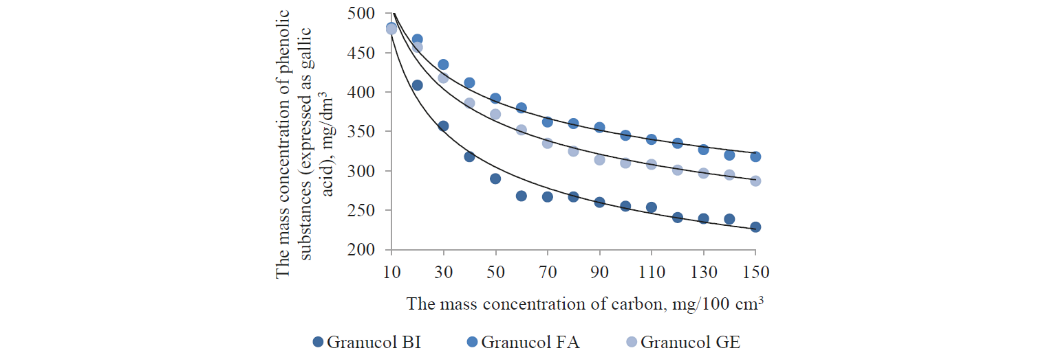 The paper introduces some experimental data on activated carbons of Granucol series that can improve the colour of sea-buckthorn wines and stabilize them during storage. Such treatment is necessary because sea buckthorn contains reactive phenolic compounds that trigger non-enzymatic oxidative browning in sea-buckthorn wine. A di- rect regulation of the amount of phenolic compounds can improve sensory characteristics of sea-buckthorn wines, as well as increase their shelf-life. The research featured table dry wine made of 10 varieties of sea buckthorn grown in the Altai region. The chromatic characteristics were studied according to the existing guidelines of the International Organization of Vine and Wine (OIV, France). The index of yellowness served as an additional indicator for the colour assessment of the sea-buckthorn wines. Another objective indicator of colour assessment was the index of the displacement of the colour of x and y coordinates that corresponded with the green-red and yellow-blue chromatic axes. When 20–60 mg/100 ml of Granucol activated carbon was used during the winemaking process, it significantly improved the harmony of the sea-buckthorn wines. In particular, it had a positive effect on the colour characteristics. Granucol carbon reduced such unfavourable taste characteristics as excessive roughness (the total amount of polyphe- nolic compounds fell by 1.5–2 times) and significantly improved the aroma by erasing the yeasty and fusel odours.