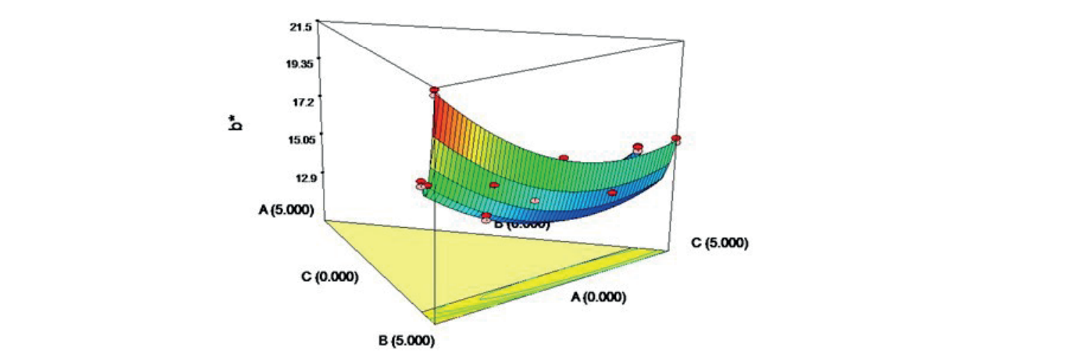 12.5 hours), obtained as a result of applying RSM for rice bran fermentation. Thus, high quality bran sourdough can be produced at the temperature of 33°C for 12.5 hours. The results of this study will be useful to produce a quality rice bran sourdough bread with appealing aroma and a long shelf-life.