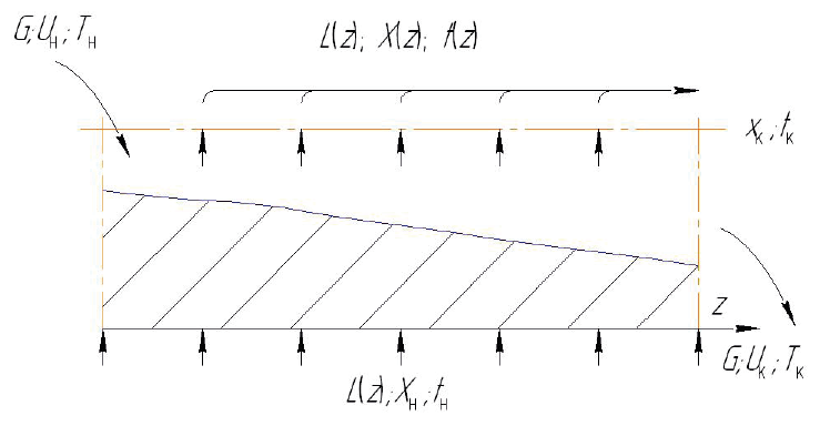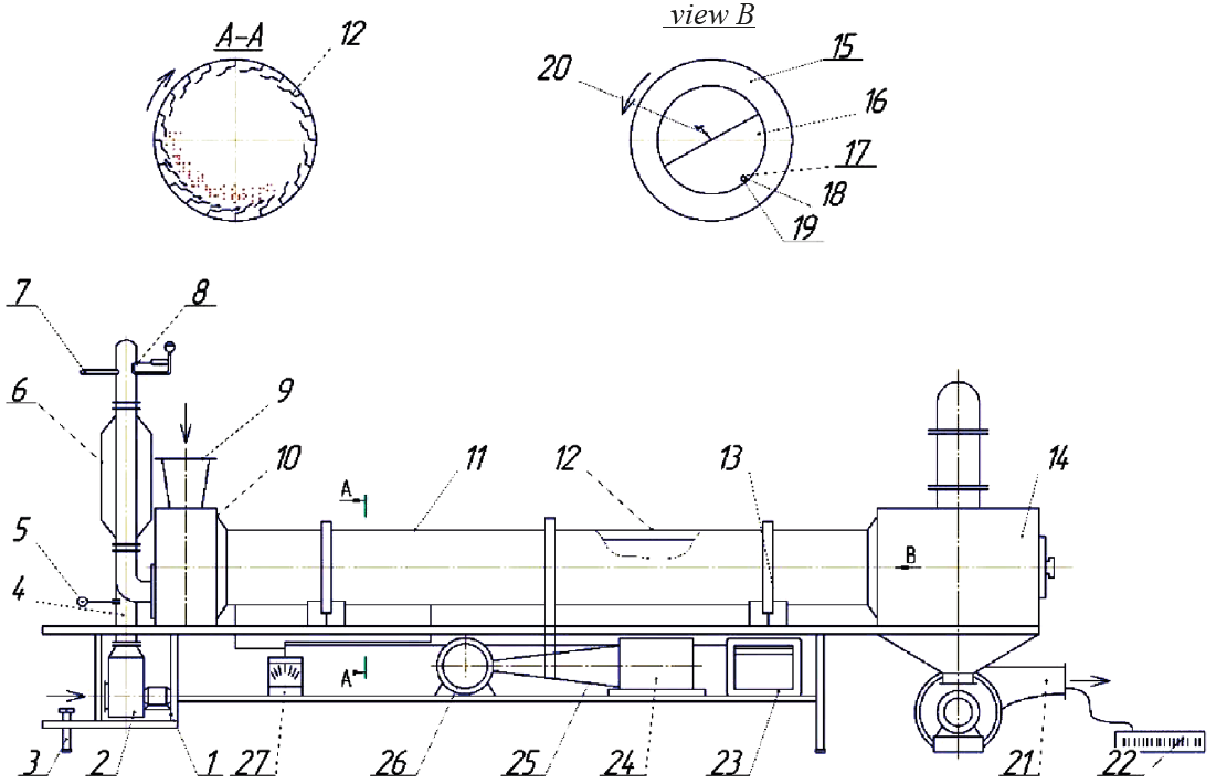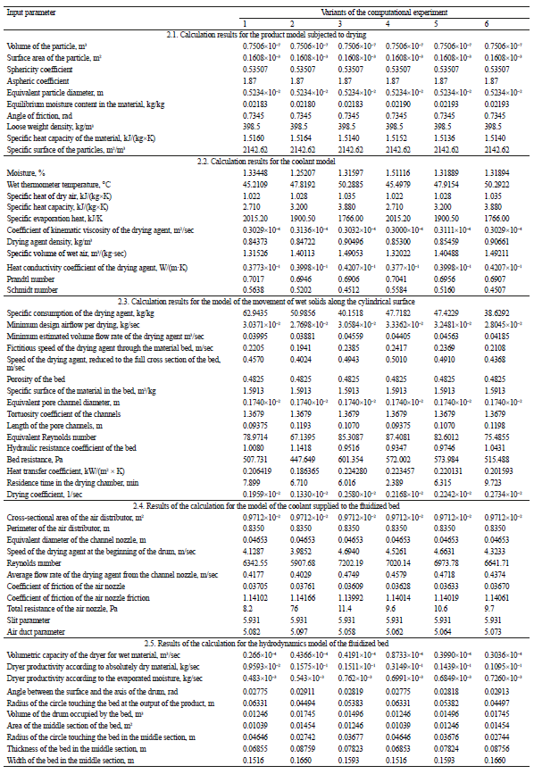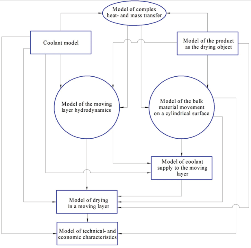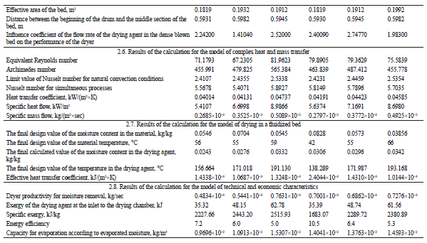 The kinetics of the drying process in continuous drum dryers differs from the drying of single objects in a batch mode. Drying process is affected by too many factors; hence, it is practically impossible to obtain an analyt- ical solution from the initial equations of heat and mass transfer, since the duration of drying depends on the opera- ting parameters. Therefore, it is of high theoretical and practical importance to create a highly efficient rotary drum dryer. Its design should be based on an integrated research of non-stationary processes of heat and mass transfer, hydrodynamics of fluidized beds, and drying kinetics in the convective heat supply. The experiment described in the present paper featured sunflower seeds. It was based on a systematic approach to modelling rotary convective drying processes. The approach allowed the authors to link together separate idealized models. Each model characterized a process of heat and mass transfer in a fluidized bed of wet solids that moved on a cylindrical surface. The experiment provided the following theoretical results: 1) a multimodel system for the continuous drying process of bulky mate- rials in a fluidized bed; 2) an effective coefficient of continuous drying, based on the mechanics of the fluidized bed and its continuous dehydration. The multimodel system makes it possible to optimize the drying process according to its material, heat-exchanger, and technological parameters, as well as to the technical and economic characteristics of the dryer.