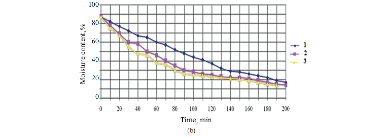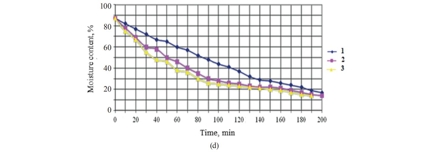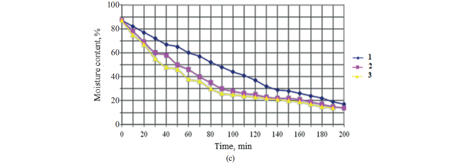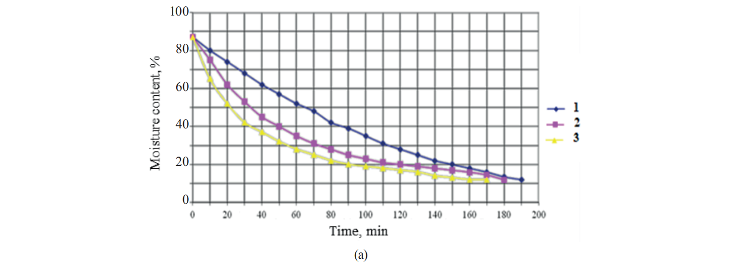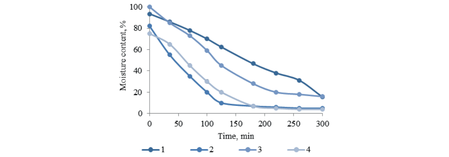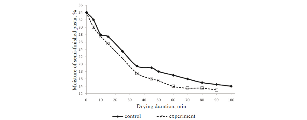 The paper describes physical characteristics of drying animal- and plant-based raw materials with pulsed infrared emitters. Furthermore, it discusses how to select and use infrared emitters to produce high quality products with a long shelf-life. Using an experimental facility, we identified basic patterns of changes in the heat flux density. We also analysed the drying thermograms and assessed the influence of process factors on the removal of moisture from raw materials and the preservation of biologically active substances in dried and concentrated products. We determined specific kinetics of drying in different modes of power supply and selected the most efficient pulsed cera- mic emitters. These emitters had a high rate of heat transfer and an ability to accurately target molecular bonds, thus reducing the drying time and energy costs. Mathematical modelling enabled us to obtain specific values of process parameters for pulsed infrared drying of plant materials. The heating time constant was calculated for root and tuber vegetables, depending on their moisture content and size. The study showed that root and tuber vegetables should not be heated to more than 60°C when irradiated with a 500 W medium-wave emitter at a working distance of 250 mm during a full 10-minute cycle. The optimal modes of drying liquid products with milk and plant proteins included a heating power of 400 W, a radiant heating temperature of 60°C, and a layer thickness of 10 mm. The selected modes of pulsed infrared drying of sugar-containing root and tuber vegetables reduced the duration of moisture removal by 16–20% and cut energy costs by 16.6%. This unconventional method of infrared drying of whole milk, whey, whey drinks, and milk mixture preserves beneficial microflora and increases the nutritional value and shelf-life, with a pos- sible content of chemically bound water of polymolecular and monomolecular adsorption ranging from 10 to 15.58%.